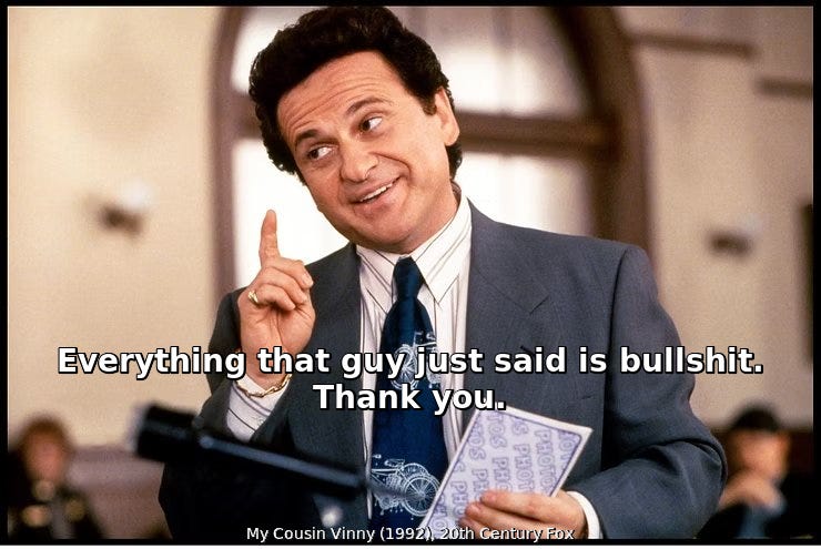 Vinny Gambini: “Everything that guy just said is bullshit… Thank you.”[2]